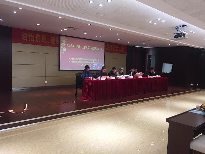 聚一堂總結(jié)經(jīng)驗(yàn),搭平臺(tái)再譜新篇。1月15日,君怡景觀、建明達(dá)監(jiān)理全體員工在海濱會(huì)議室召開了2016年度工作總結(jié)表彰大會(huì)。總結(jié)公司2016年取得的成績(jī)和經(jīng)驗(yàn),表彰2016年度先進(jìn)集體和優(yōu)秀人員,舉行新春團(tuán)拜會(huì)??偣径聲?huì)領(lǐng)導(dǎo)李清洋、王家松、徐遠(yuǎn)航,君怡景觀公司總經(jīng)理陳維翔,建明達(dá)監(jiān)理公司總經(jīng)理劉新吉,君怡景觀公司副總經(jīng)理范偉,建明達(dá)監(jiān)理公司總工姚加千,各職能部門經(jīng)理、各項(xiàng)目總監(jiān)及全體員工參加了大會(huì)。舊歲已展千重錦,新年更進(jìn)百尺桿?;仡?span lang="EN-US" style="font-size:16px;">2016,展望2017,緊密團(tuán)結(jié),續(xù)寫新篇!