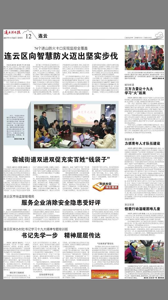 近日,公司黨支部聯(lián)動(dòng)?xùn)|園社區(qū)黨委、江蘇銀行黨支部等單位,在公司三樓會(huì)議室聯(lián)合舉行“新黨章之我見(jiàn)”學(xué)習(xí)討論活動(dòng)?;顒?dòng)由墟溝街道黨工委紀(jì)委書(shū)記曹文輝主持,東園社區(qū)黨委書(shū)記陳秀榮、公司黨支部書(shū)記劉新吉以及公司黨支部部分黨員參加了學(xué)習(xí)討論活動(dòng)。曹書(shū)記結(jié)合十九大精神對(duì)新黨章修改的背景、修改的主要內(nèi)容及學(xué)習(xí)的主要要點(diǎn)進(jìn)行了耐心細(xì)致的講解,與會(huì)人員進(jìn)行了熱烈的討論。公司黨支部書(shū)記劉新吉,結(jié)合我單位作為科研設(shè)計(jì)行業(yè)企業(yè)的特點(diǎn),以身邊小事、公司項(xiàng)目為出發(fā)點(diǎn),延伸討論了新黨章變化、十九大精神對(duì)我們工作和生活的影響和指導(dǎo)意義,并號(hào)召公司全體黨員認(rèn)真學(xué)習(xí)和領(lǐng)會(huì)十九大精神和新黨章內(nèi)容。2017年11月23日的《連云港日?qǐng)?bào)》對(duì)此活動(dòng)進(jìn)行了圖文報(bào)道。
