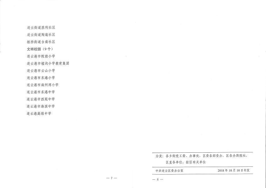 10月10日,中共連云區(qū)委、連云區(qū)人民政府發(fā)布《關(guān)于命名2016-2017年度連云區(qū)文明單位、文明村、文明社區(qū)、文明校園的決定》,我單位被授予“區(qū)文明單位”榮譽(yù)稱號(hào)。這是我單位精神文明創(chuàng)建工作的又一項(xiàng)豐碩成果。