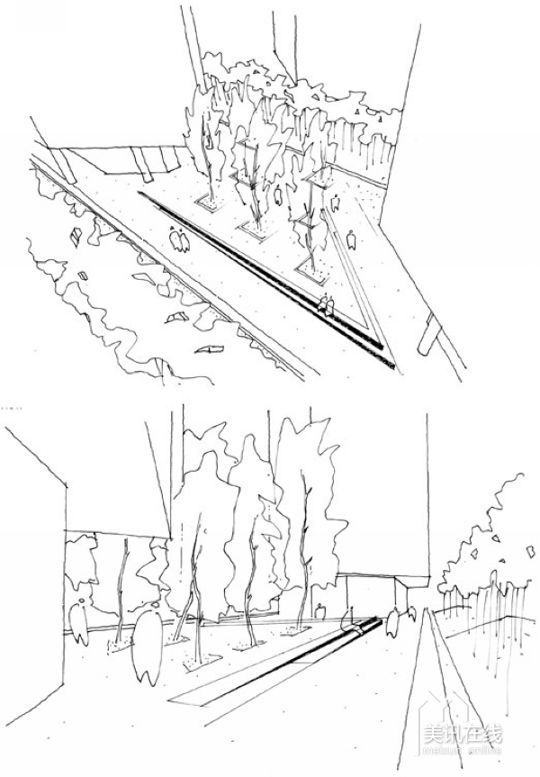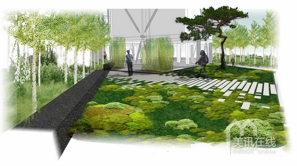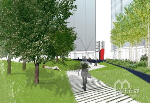 首先,對于住宅區(qū)外部空間的利用達到了極致。在每棟樓宇之間的空地以及地下空間都設(shè)計了很多的植被種植,以及曲徑通幽的