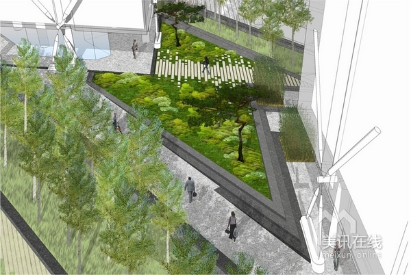 的植被種植藍圖。而又由于住宅區(qū)位處于市中心,給了設(shè)計者對于生態(tài)設(shè)計的考量空間。