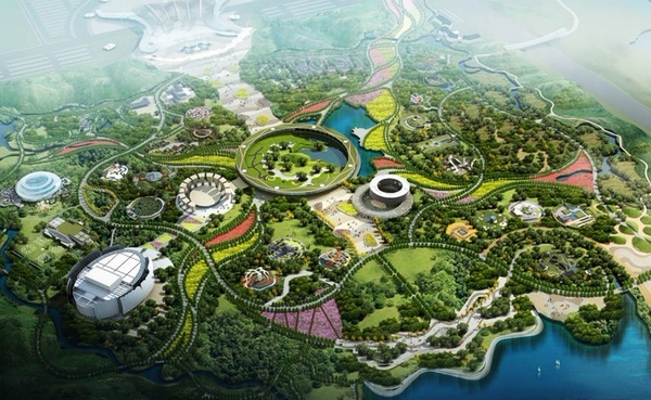 園區(qū)基礎(chǔ)設(shè)施工程已經(jīng)全部完成,景觀樹木種植及200萬平方米園區(qū)草坪鋪裝也已結(jié)束。仍在繼續(xù)的工程主要是展館的內(nèi)部陳設(shè)。明年春天還會(huì)有大量花卉引入園區(qū)。