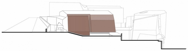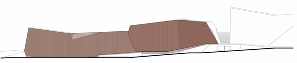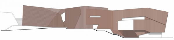 巨石設(shè)置在Salvokop山山腳,就像一塊露頭的巖石。建筑的墻體和屋頂都覆蓋了銅板,“露頭的巖石”將隨著時(shí)間的推移,逐漸銹蝕成綠色,與自然景觀融合在一起。