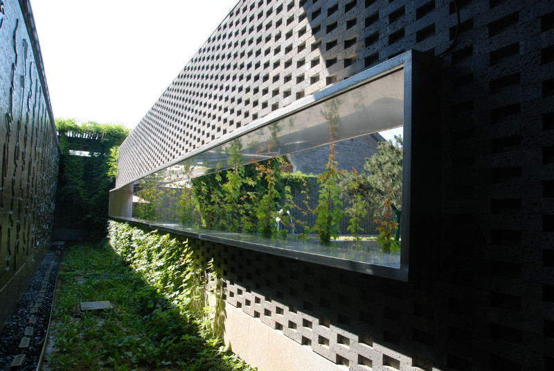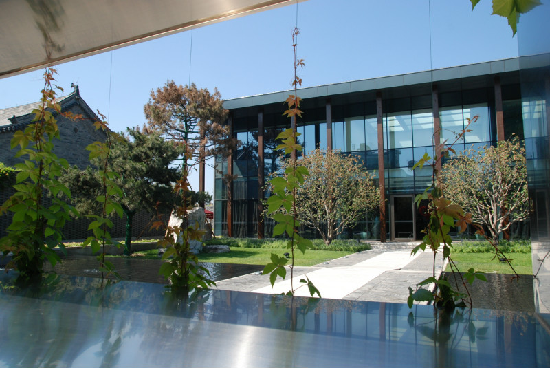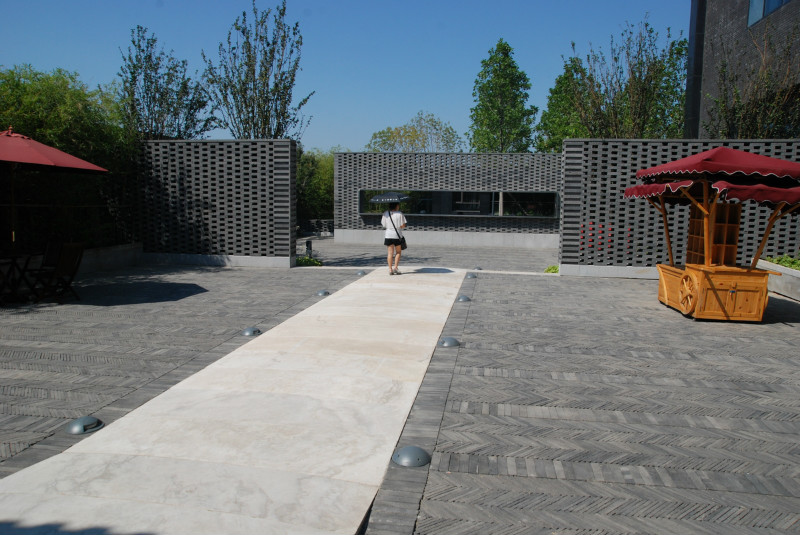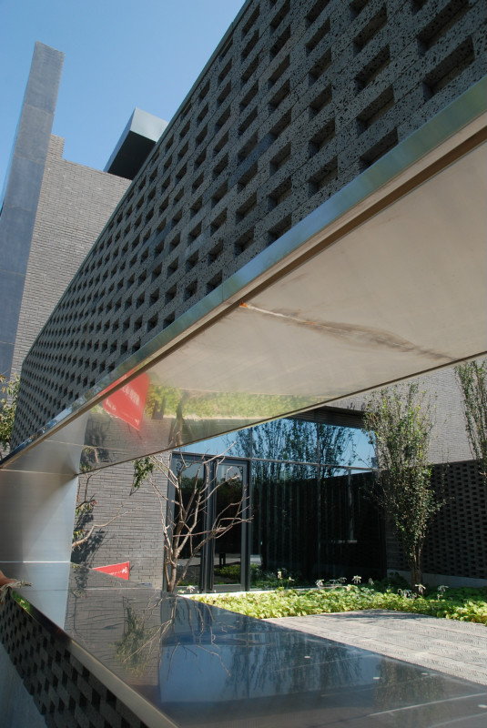 如園的建筑立面采用中國傳統(tǒng)建筑的經(jīng)典三段式,大屋頂、屋身和基座,而這當(dāng)中最為精華、最能體現(xiàn)中國傳統(tǒng)特質(zhì)的則是坡屋頂?!对娊?jīng)》有云:“如跂斯翼,如矢斯棘,如鳥斯革,如翚斯飛”。如園的屋頂正是由中國古建中的重檐頂提煉而來。其坡度平緩,上檐坡度18度,下檐坡度12度;出檐深遠(yuǎn),出挑墻面1.4米;上檐直線與曲線巧妙結(jié)合,成向上微翹的飛檐,不但在功能上增大了10層的采光面積,利于排水,外觀上更為輕盈。