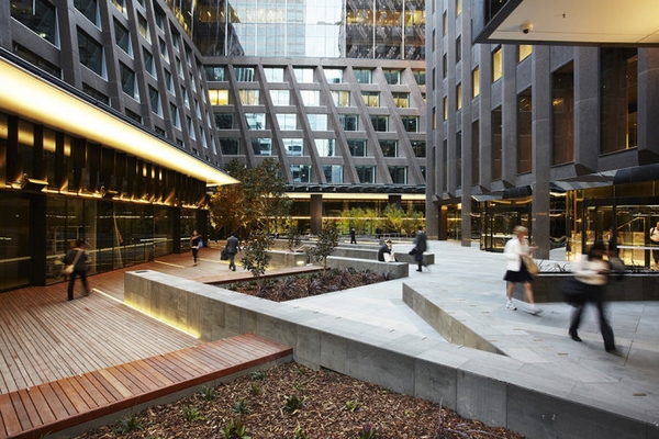 設(shè)計(jì)項(xiàng)目包括一塊以木蘭樹(shù)為兩個(gè)廣場(chǎng)中間一個(gè)主要的視覺(jué)節(jié)點(diǎn)的景觀設(shè)計(jì),木蘭樹(shù)在此還可以阻擋風(fēng)力;為零售空間提供的正式座位區(qū)和為當(dāng)?shù)鼐用癯晕顼堅(jiān)O(shè)置的非正式地區(qū)。