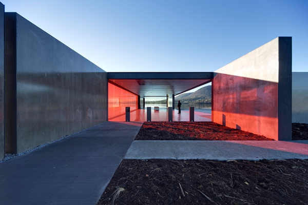 時(shí)的庇護(hù)。第二階段也在今年完成,里面有新建的第三個(gè)展示館,整個(gè)展示館由混凝土和紅色玻璃組