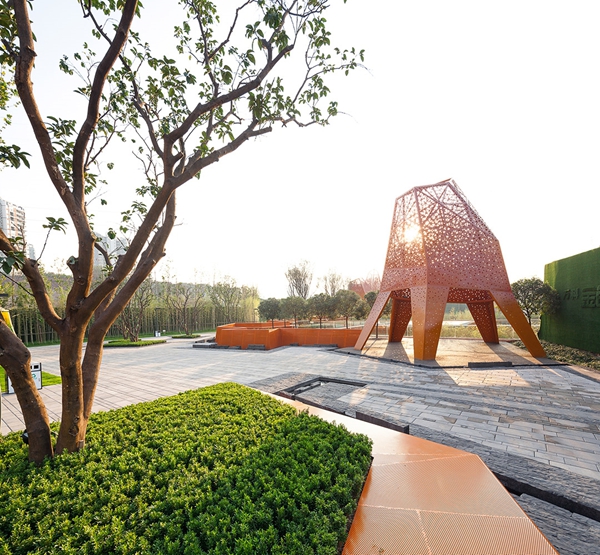 從入口廣場的雕塑,“Z”形小道,再到蜿蜒的水景、拐角平臺最終到達(dá)銷售中心,整個公園就是一個連續(xù)的快樂旅程。