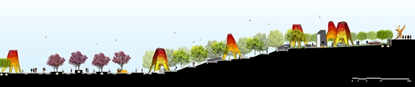 公園的主要設(shè)計(jì)點(diǎn)是建造一個具有獨(dú)特標(biāo)志的示范園區(qū)和城市公共空間,促進(jìn)未來經(jīng)濟(jì)的發(fā)展。公園應(yīng)能將目光從上部主干道和楓溪路入口吸引到萬科發(fā)展銷售中心;同時還能根據(jù)周邊未來發(fā)展的需要進(jìn)行改造和整合。