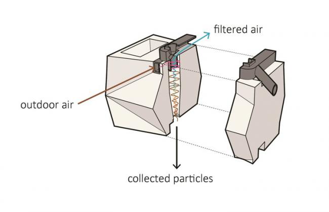 會呼吸的磚將被用于建筑正常通風系統(tǒng)的一部分, 它是一種雙層磚結構,外部精制磚輔以可提供標準絕緣的內層結構。呼吸磚的設計概念是旋風過濾, 一個來自現(xiàn)代真空吸塵器的理念。
