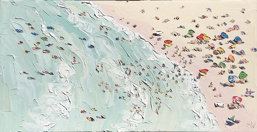 Sally West是澳大利亞最知名的藝術(shù)家之一,她的作品頗受國際藏家的青睞。這里為大家展示她的最新創(chuàng)作海灘系列。自由奔放的涂抹盡顯夏日海灘休閑風(fēng)情。精準(zhǔn)嫻熟的色彩與恣意的觸痕,讓雖是色塊的展現(xiàn)的畫面如此鮮活生動,仿佛可以聽見海浪聲聲與人聲鼎沸。