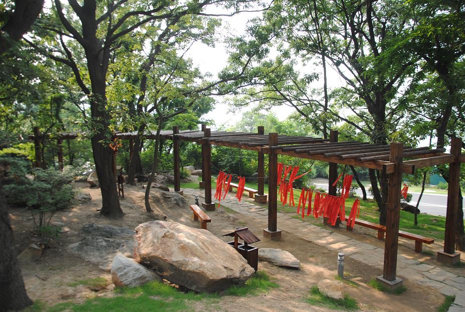 游客來(lái)此留下的同心鎖,祈福符,為孔雀園增添了祥和之氣。