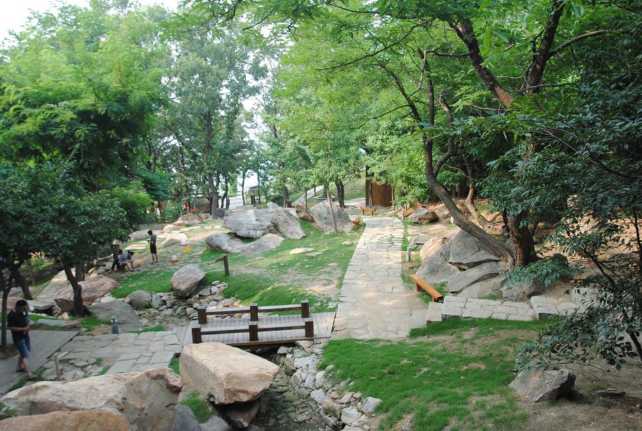 園區(qū)依山勢(shì)而建,空間錯(cuò)落有致,開合有度,道路曲折通幽,小橋流水,林木茂密,鳥語(yǔ)花香。