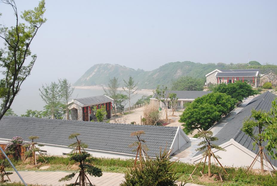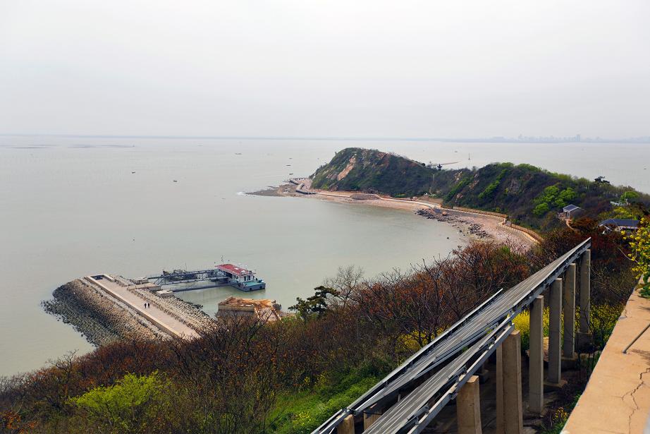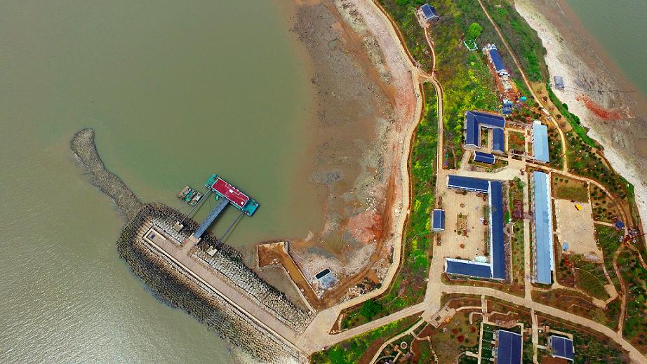 秦山島躉船碼頭鳥瞰,是登島主要碼頭,未來將于城市游客碼頭及連島游艇碼頭實現(xiàn)對接。
