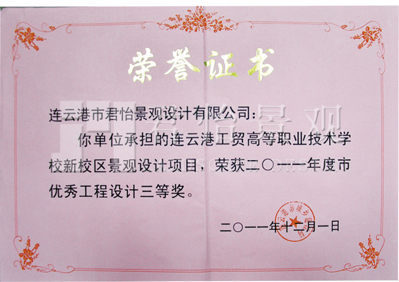 2011年獲獎(jiǎng)證書(shū)