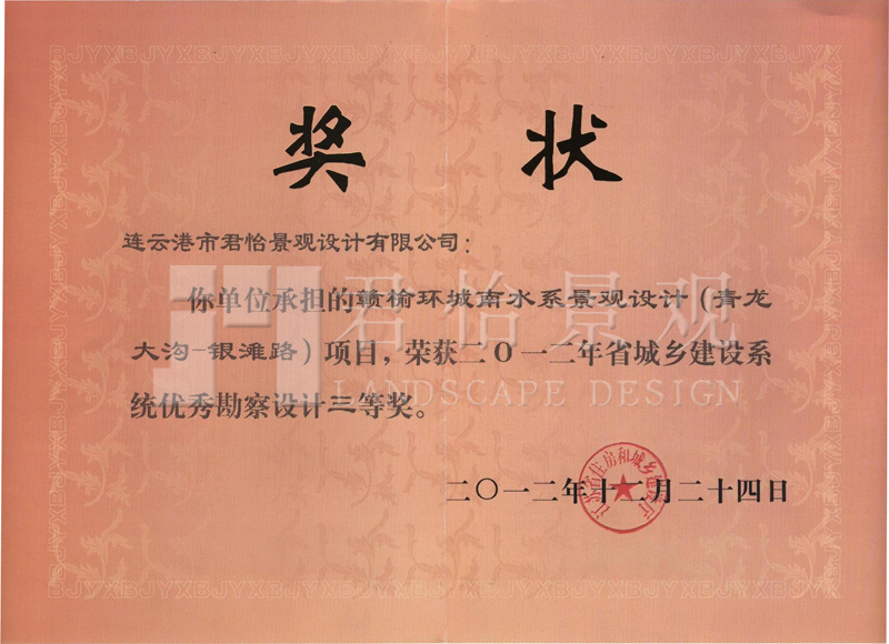 2012年獲獎證書